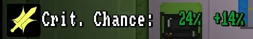 The default crit chance is 10%. As shown here it is now 24% meaning that it is modified by +14%. And green text is used to indicate a positive change.